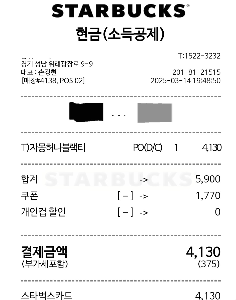 **적립 포인트 최대화**: 스타벅스 리워드와 병행하여 적립 포인트 쌓기.
