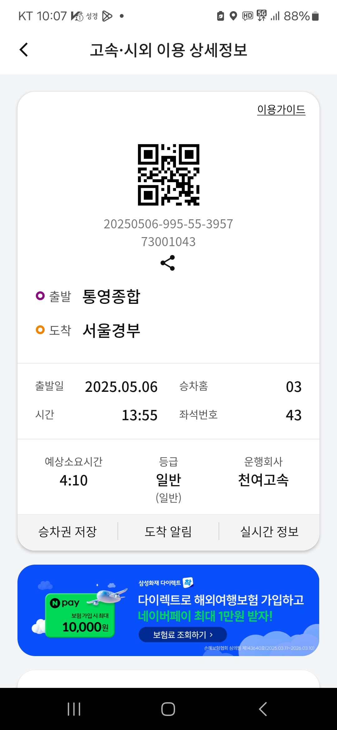 통영에서 반포고속터미널(경부선)까지 한번에 가요!!